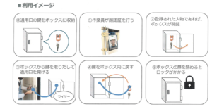 このシステムでは、登録者のみがキーBOXの開閉を行うことが可能となり、不特定多数による利用を防ぐことができます。
